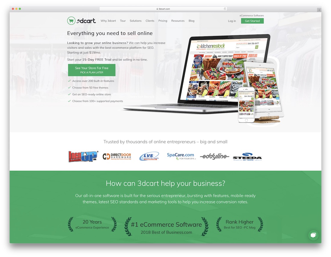 Avec un certain nombre de modèles optimisés pour les moteurs de recherche et plus de deux cent fonctionnalités intégrées, 3dcart ne déçoit pas. Vous pouvez rapidement synchroniser vos produits avec eBay, Amazon et Facebook, pour n'en nommer que quelques-uns, sans vous soucier de l'évolutivité. De plus, avec le tableau de bord de l'administrateur de 3dcart, vous vous sentirez très à l'aise pour gérer et maintenir votre site Web sur les vêtements. Le logiciel vous permet de gagner un temps précieux, que vous pouvez investir sur le marché et pousser votre marque au-delà.